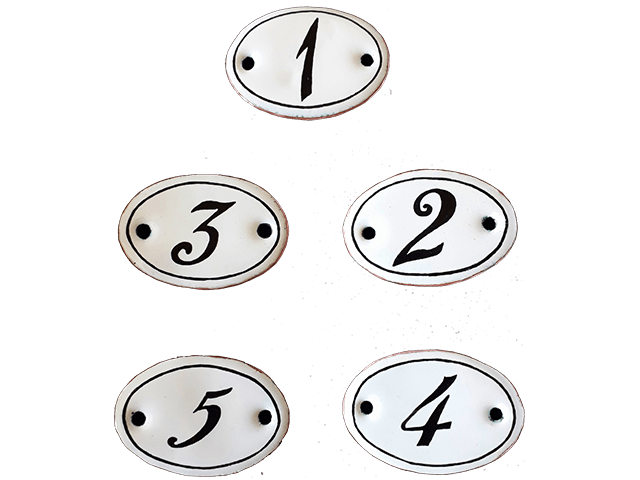 Numéros ← décoration Numéros 1-2-3-4-5 sans liseré 75,00€ PLUS D’INFORMATIONS ICI Numéro seul ovale à partir de 51,00€ PLUS D’INFORMATIONS ICI Numéros 1-10 140,00€ PLUS D’INFORMATIONS ICI Numéro seul rectangulaire 70,00€ PLUS D’INFORMATIONS ICI Numéros 1-2-3-4-5 avec liseré 79,00€ PLUS D’INFORMATIONS ICI