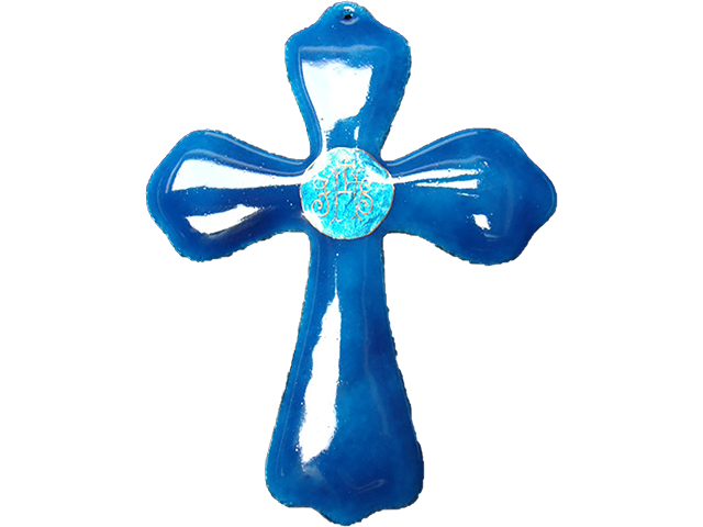 Croix simple (avec paillon) – Bleue platine